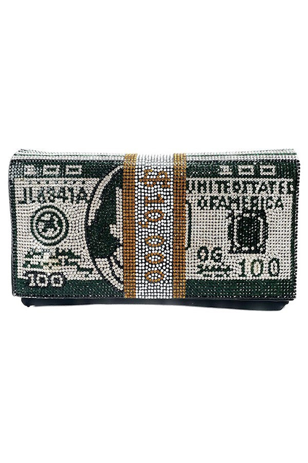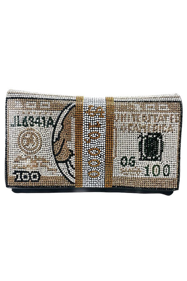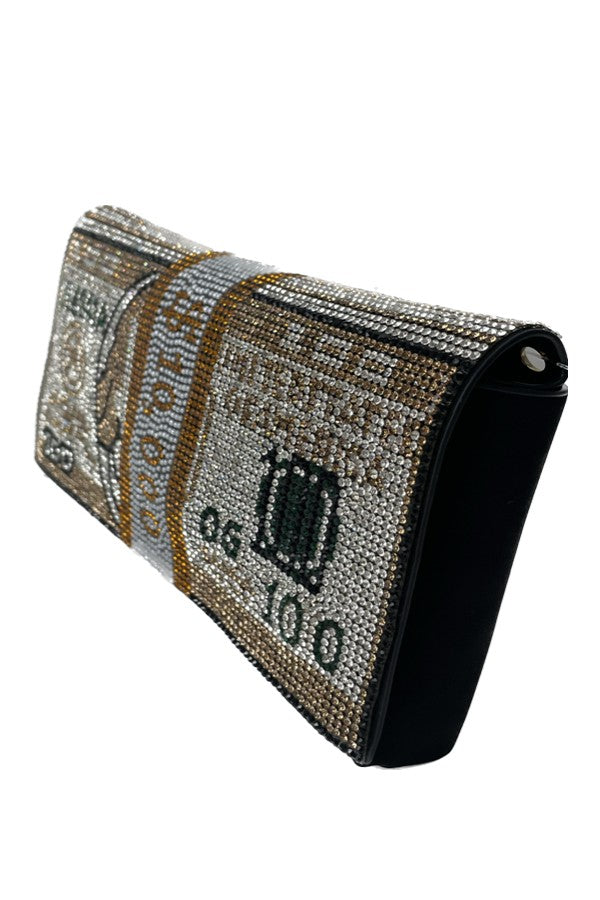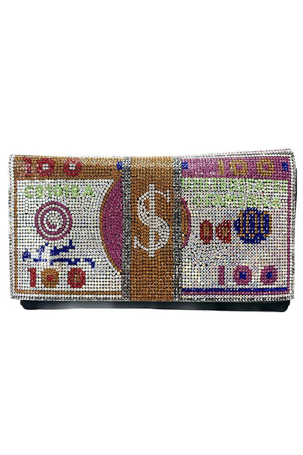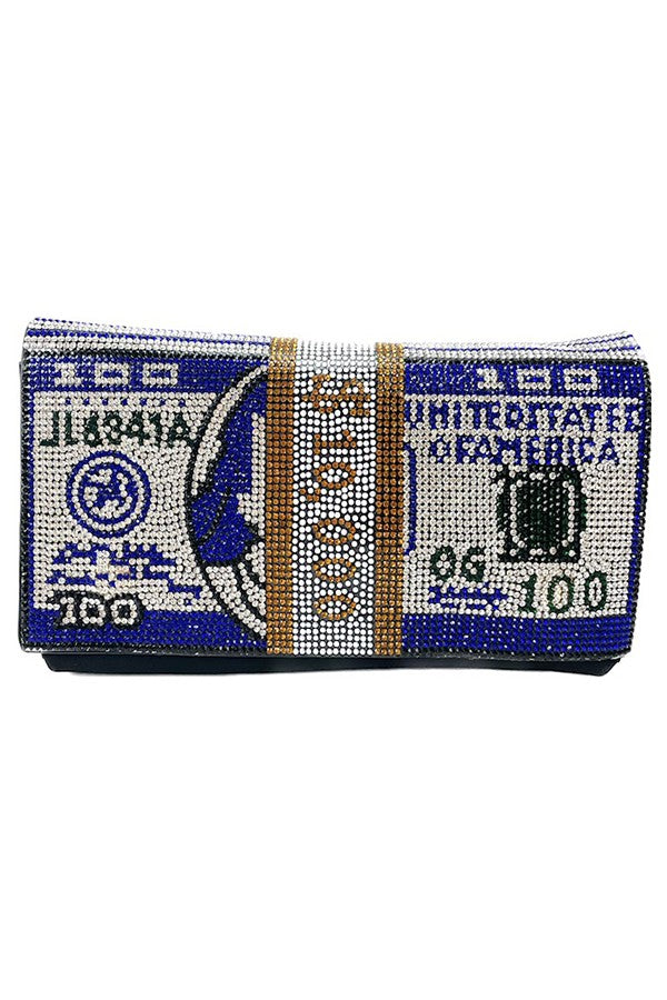 The Full Crystal Money Clutch / Fanny Pack is the ultimate accessory for those who want to combine style with functionality. This chic clutch is adorned with stunning crystals that catch the light beautifully, making it a perfect addition to any outfit. Whether you're heading out for a night on the town or just running errands, this fanny pack will keep your essentials close at hand while ensuring you look fabulous.