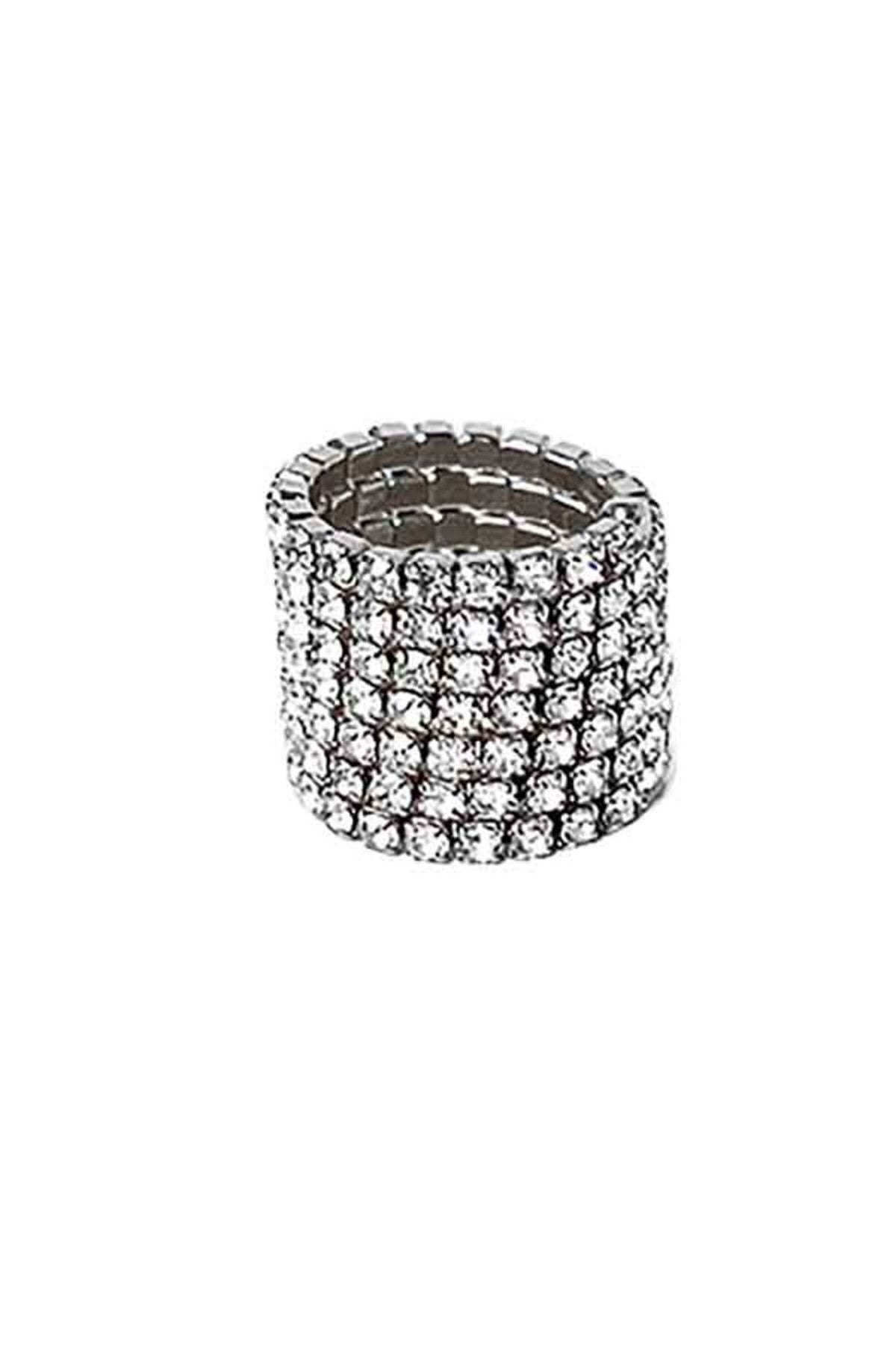 A sparkling full rhinestone spring ring with a stretchy band, showcasing a dazzling array of rhinestones.