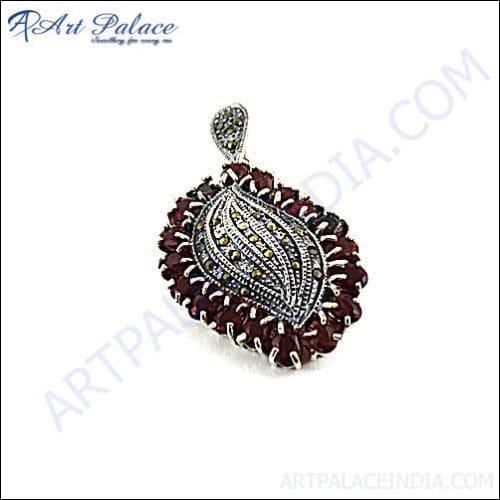 Dropship Genuine Garnet and Marcasite Gunmetal Silver Pendant