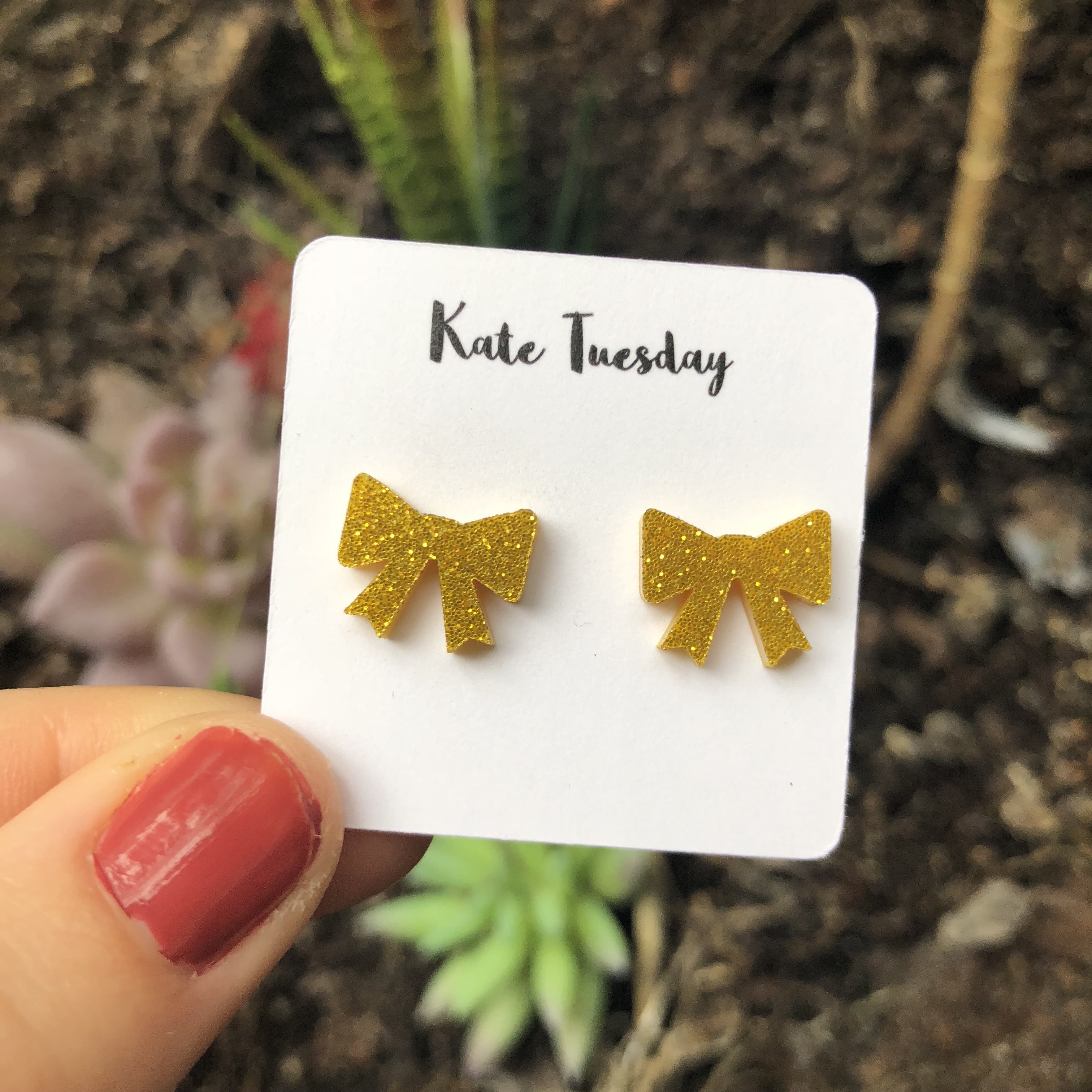 Acrylic earrings have gained popularity due to their lightweight nature and vibrant colors. They are an excellent alternative to heavier metal earrings, making them suitable for all-day wear. Additionally, acrylic can be molded into various shapes and designs, allowing for unique and creative styles like our Golden Bow design.