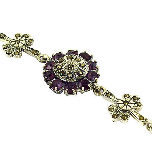 This bracelet is designed to complement a variety of styles, making it a versatile accessory for any wardrobe. Pair it with casual outfits for a chic look or wear it with formal attire to make a statement. No matter how you choose to style it, the Gorgeous Amethyst & Gun Metal Gemstone Silver Marcasite Bracelet will elevate your ensemble and let your personality shine.