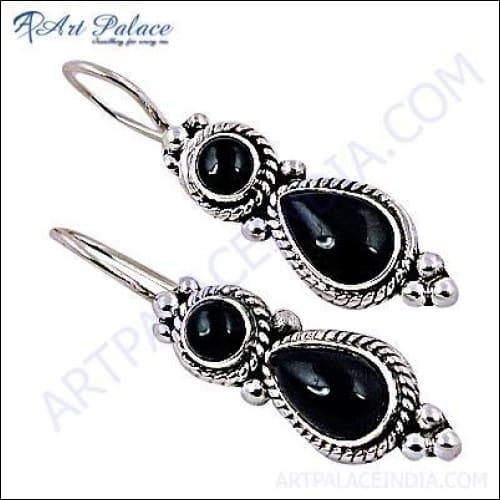 Introducing the Graceful Ethnic Designer Black Onyx Silver Earrings, a stunning accessory that embodies elegance and sophistication. These earrings are designed to enhance your beauty and complement your style, making them a must-have addition to your jewelry collection. Crafted with precision, these earrings feature exquisite black onyx stones set in high-quality silver, ensuring durability and a luxurious look.