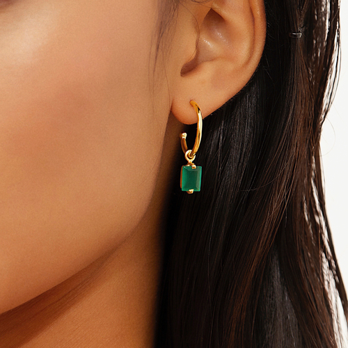 Dropship Green Onyx Earrings, Green Gemstone Earrings, Open Huggie Hoops