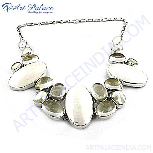 Introducing our exquisite Handcrafted Crystal & Pearl Shell Gemstone 925 Silver Necklace, a symbol of elegance and sophistication. This impeccably crafted necklace is the perfect accessory to elevate any ensemble, whether it's a casual day out or a special occasion.