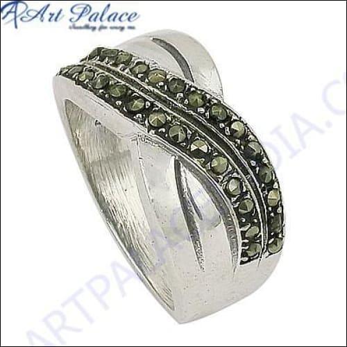 The Bypass Gun Metal Gemstone Silver Marcasite Ring boasts several key features that set it apart from other jewelry pieces: