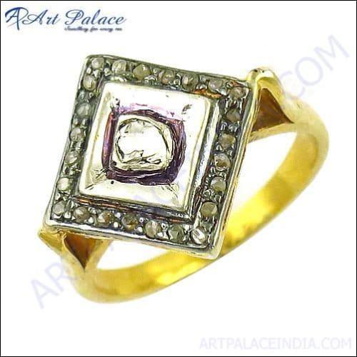 Dropship Hand-Finished Victorian Ring: Diamond Gold-Plated Silver Victorian