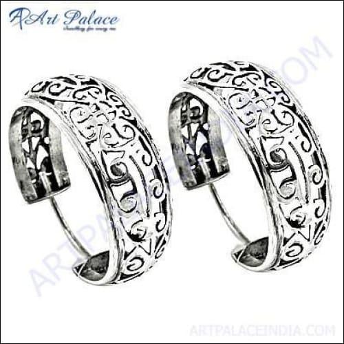 A pair of elegant handmade 925 sterling silver earrings with intricate designs, showcasing their unique craftsmanship and shine.