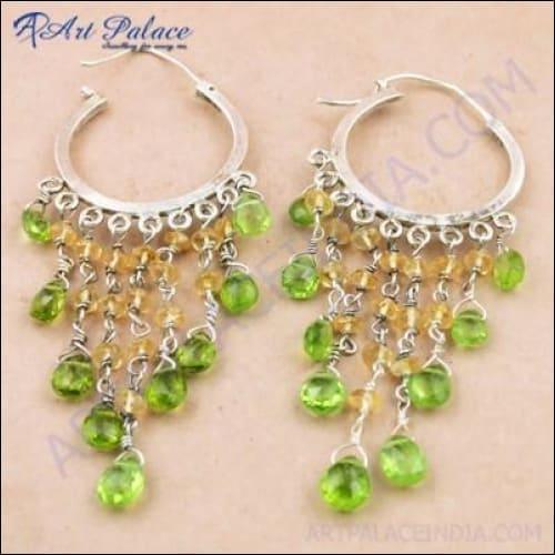 Discover the exquisite beauty of our Handmade Citrine & Peridot Gemstone Silver Beaded Party Wear Earrings, a stunning accessory that adds a touch of elegance to any outfit. These earrings are meticulously crafted by skilled artisans at Art Palace, Jaipur, a renowned manufacturer and exporter of fine jewelry since 1981. With a commitment to quality and creativity, our earrings are designed to captivate and enhance your style.