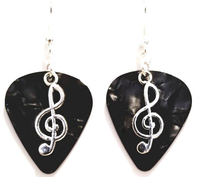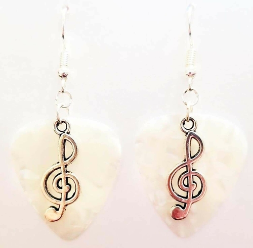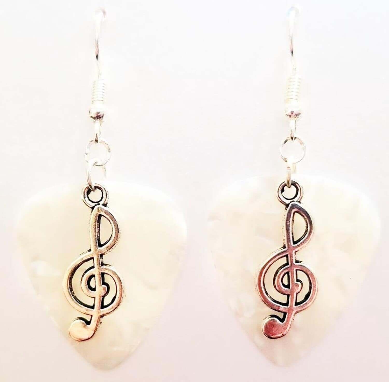 Introducing our stunning Handmade Guitar Pick Earrings, designed for music lovers and fashion enthusiasts alike. These earrings are not just accessories; they are a statement piece that showcases your passion for music. With a unique treble clef design, these earrings are perfect for adding a touch of personality to any outfit.