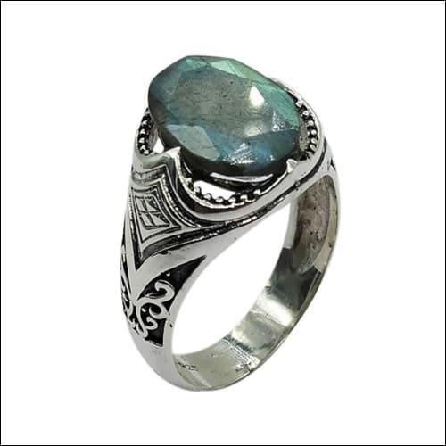 The centerpiece of this ring is the captivating labradorite gemstone. Known for its unique play of colors, labradorite exhibits stunning iridescence that changes with the angle of light. This magical effect makes each ring truly one-of-a-kind, as no two stones are alike. Wearing this ring not only adds elegance to your outfit but also serves as a conversation starter.