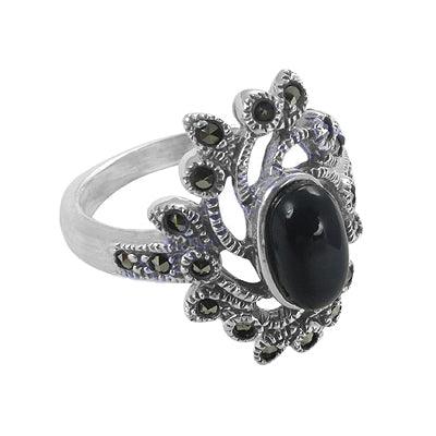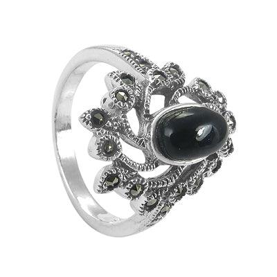 This High Quality Black Onyx Marcasite Ring is versatile enough to be worn for any occasion. Whether you're dressing up for a formal event or adding a touch of elegance to your everyday outfit, this ring is the perfect accessory. Its timeless design makes it suitable for both casual and formal settings, making it a must-have in your jewelry collection.