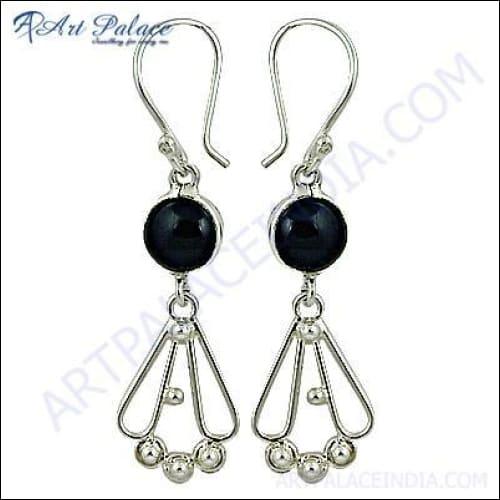 Elegant High-Quality Black Onyx Silver Earrings showcasing a stunning black onyx stone set in fine silver, perfect for stylish occasions.