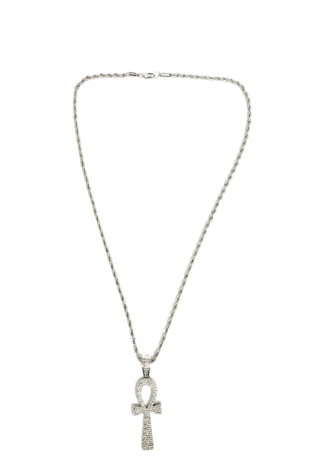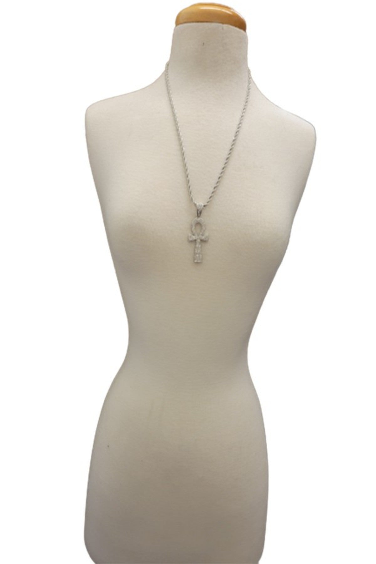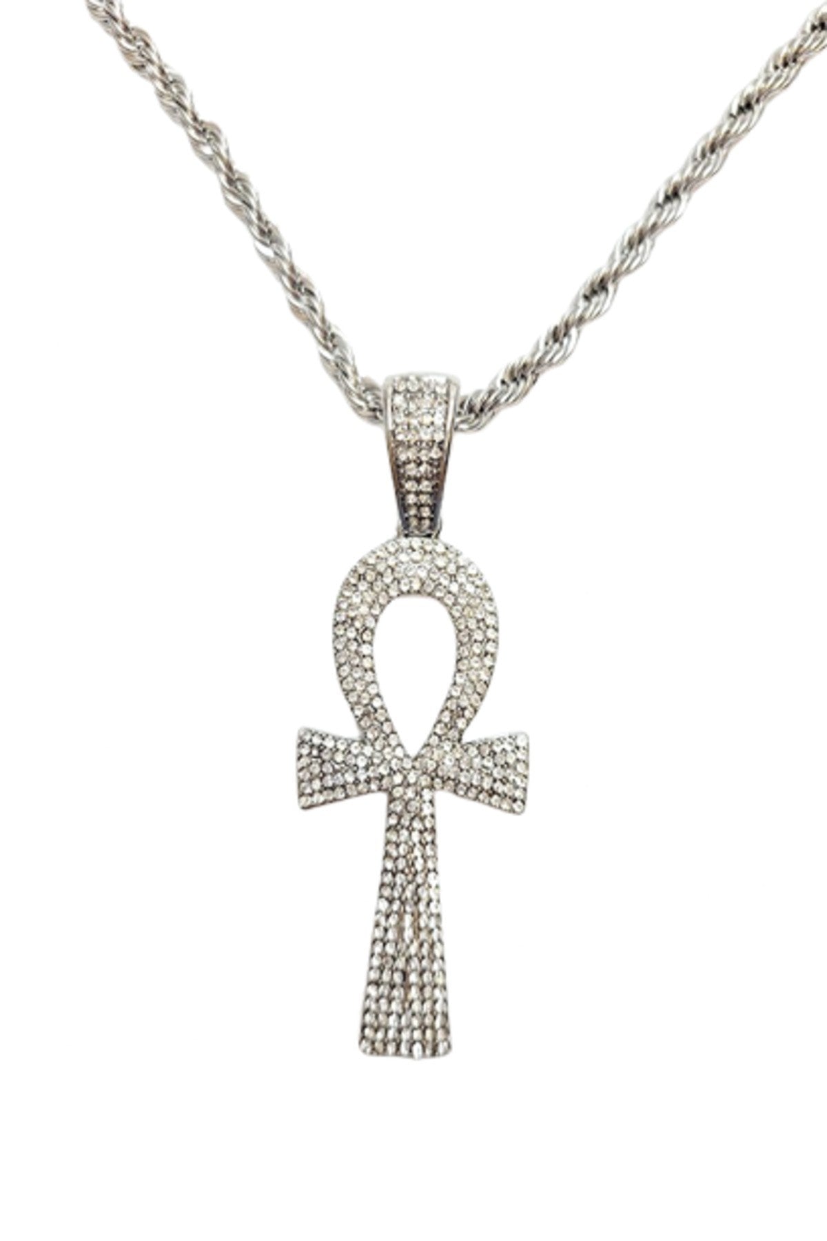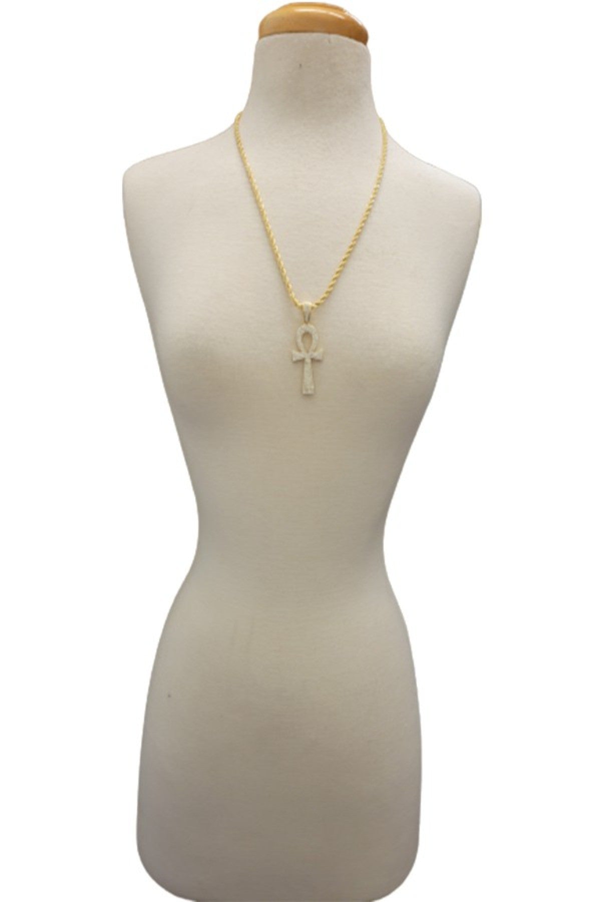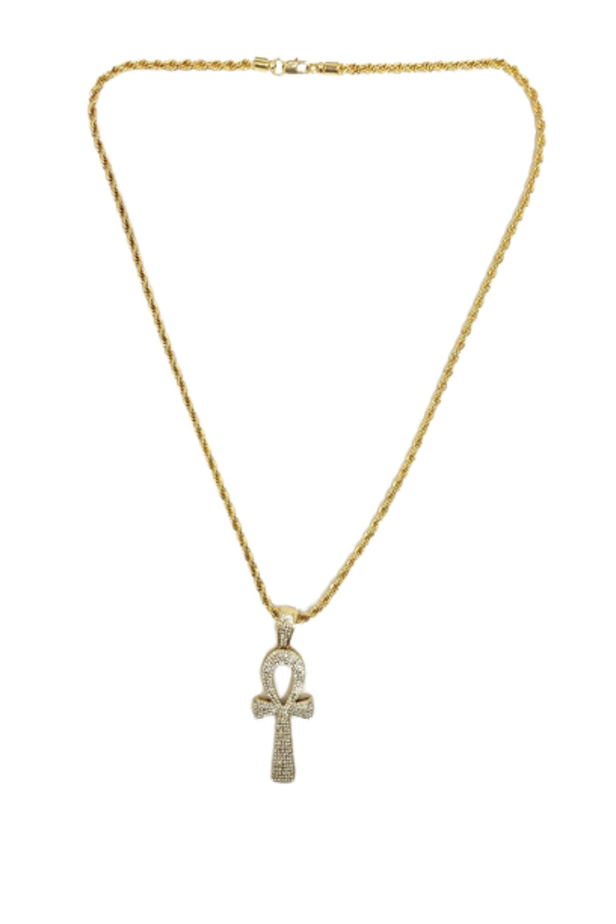 Hip Hop Iced Out Ankh Cross Pendant Chain with 24-inch rope chain, featuring a sparkling ankh cross design.