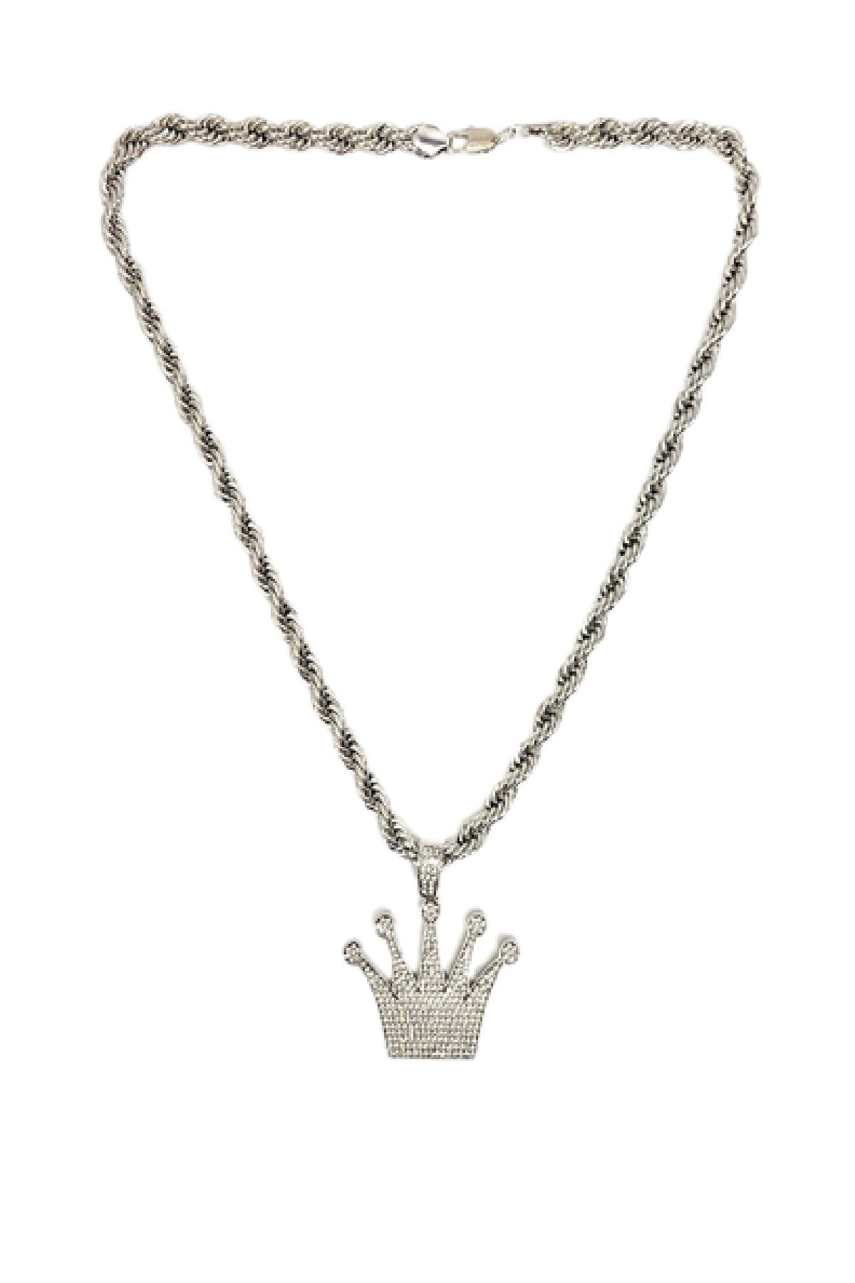 Accompanying the pendant is a robust 24-inch rope chain that complements the crown design perfectly. The chain has an 8mm width, providing a substantial feel while remaining comfortable to wear. The rope design adds a touch of elegance and sophistication, making it suitable for both casual and formal occasions.