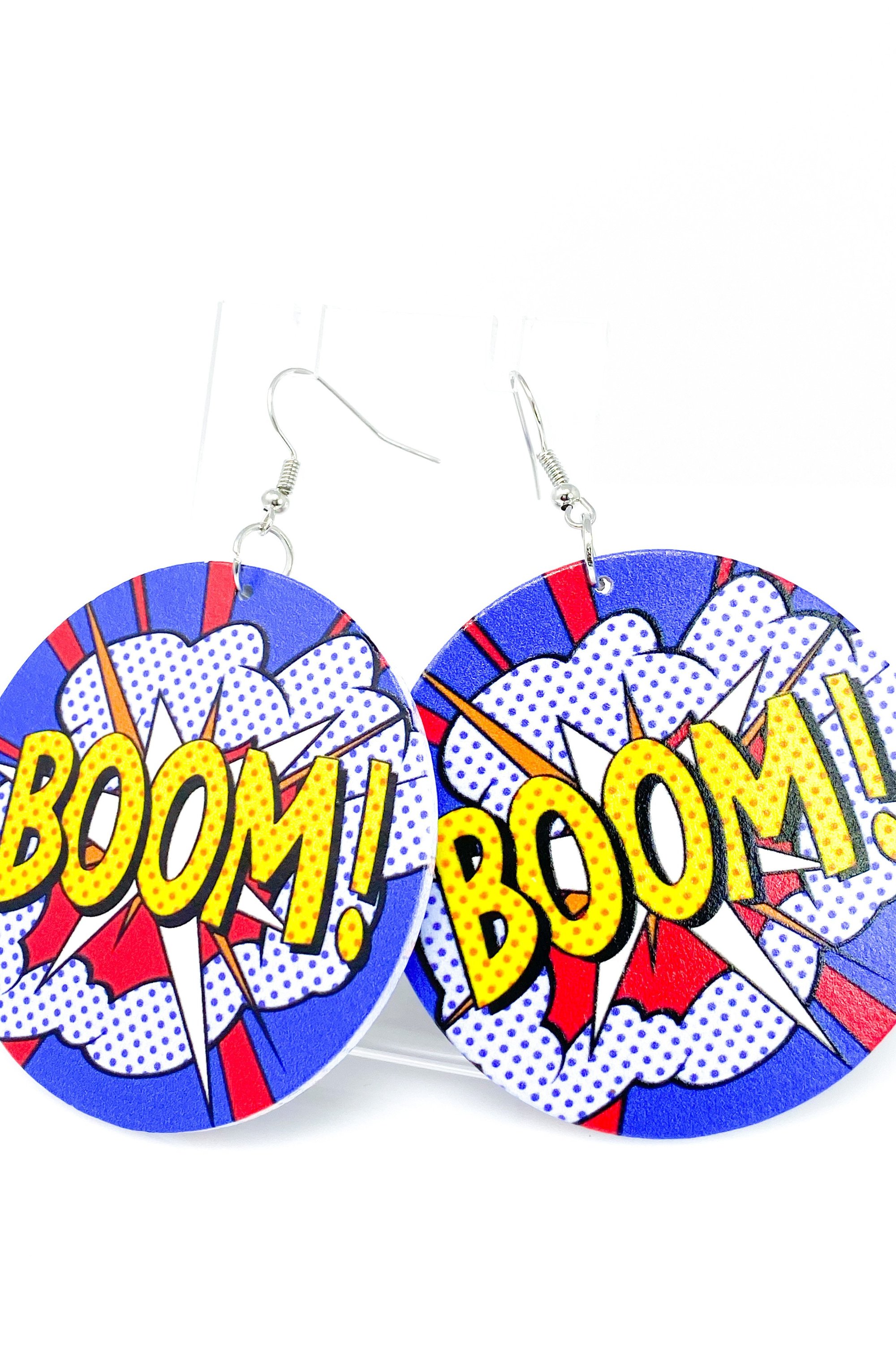 Introducing the stunning Hoops - Boom! earrings, a perfect blend of style and cultural flair. These earrings are not just accessories; they are a statement piece that adds a pop of color and personality to any outfit. Crafted from high-quality wood, these hoop earrings are designed to be lightweight and comfortable, making them ideal for all-day wear.
