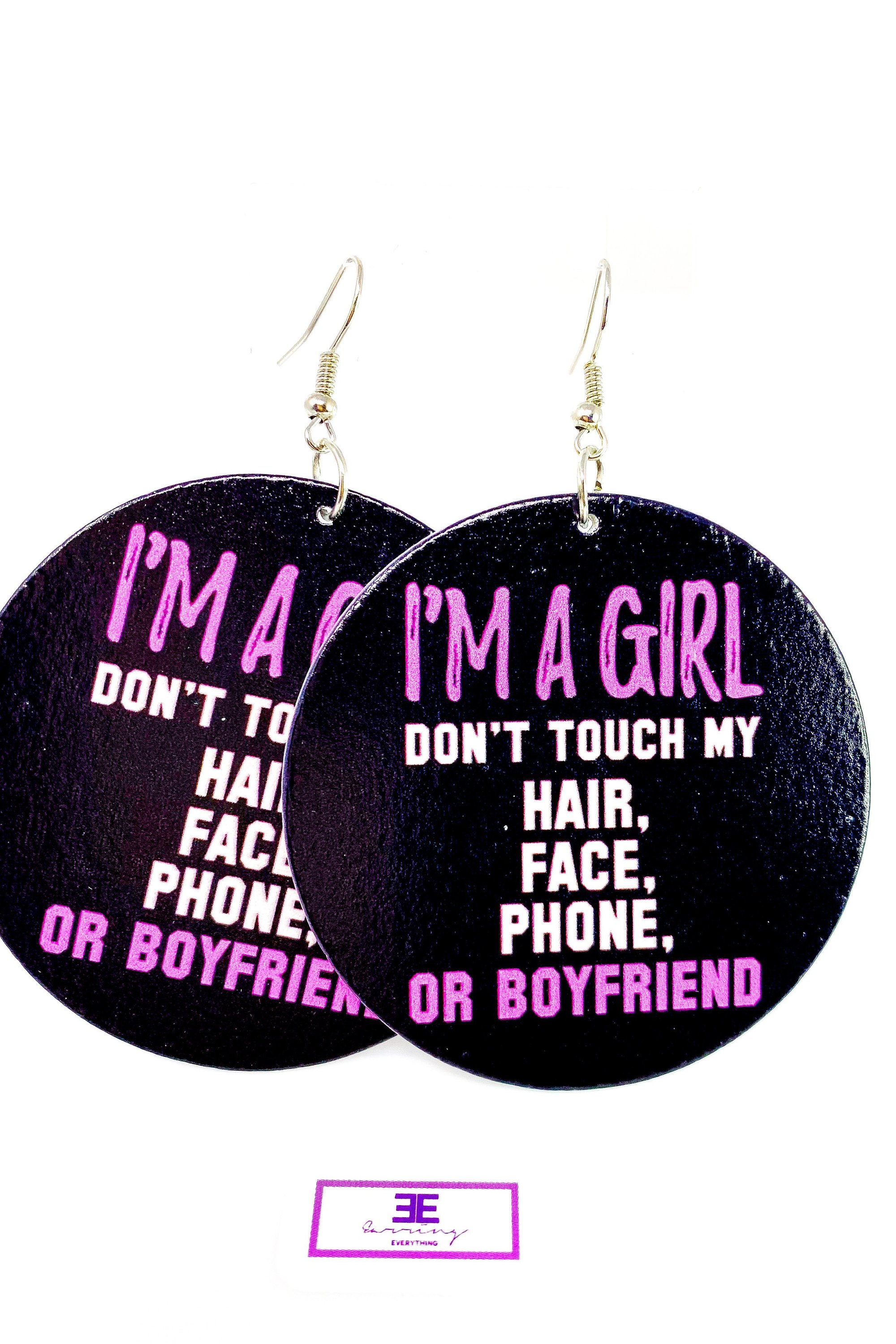 Introducing the Hoops - Girl Tingz, a pair of exquisite hoop drop earrings that are perfect for any fashion-forward individual. These earrings are designed to make a statement while providing comfort and durability. Crafted from high-quality wood, they feature a unique print repeat design that adds a touch of personality to your outfit. With a diameter of 2.25 inches, these earrings are the ideal size to catch attention without being overwhelming.