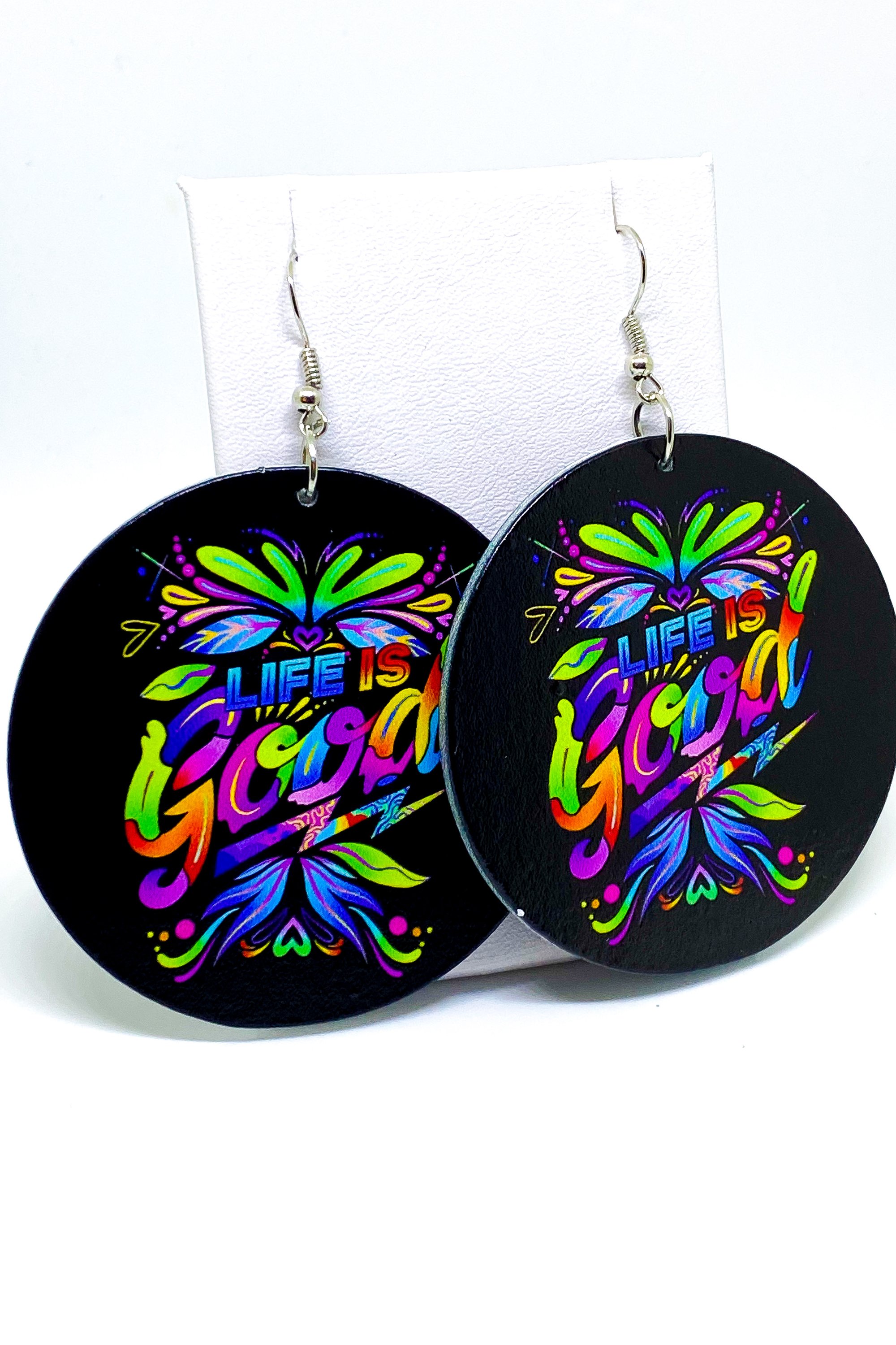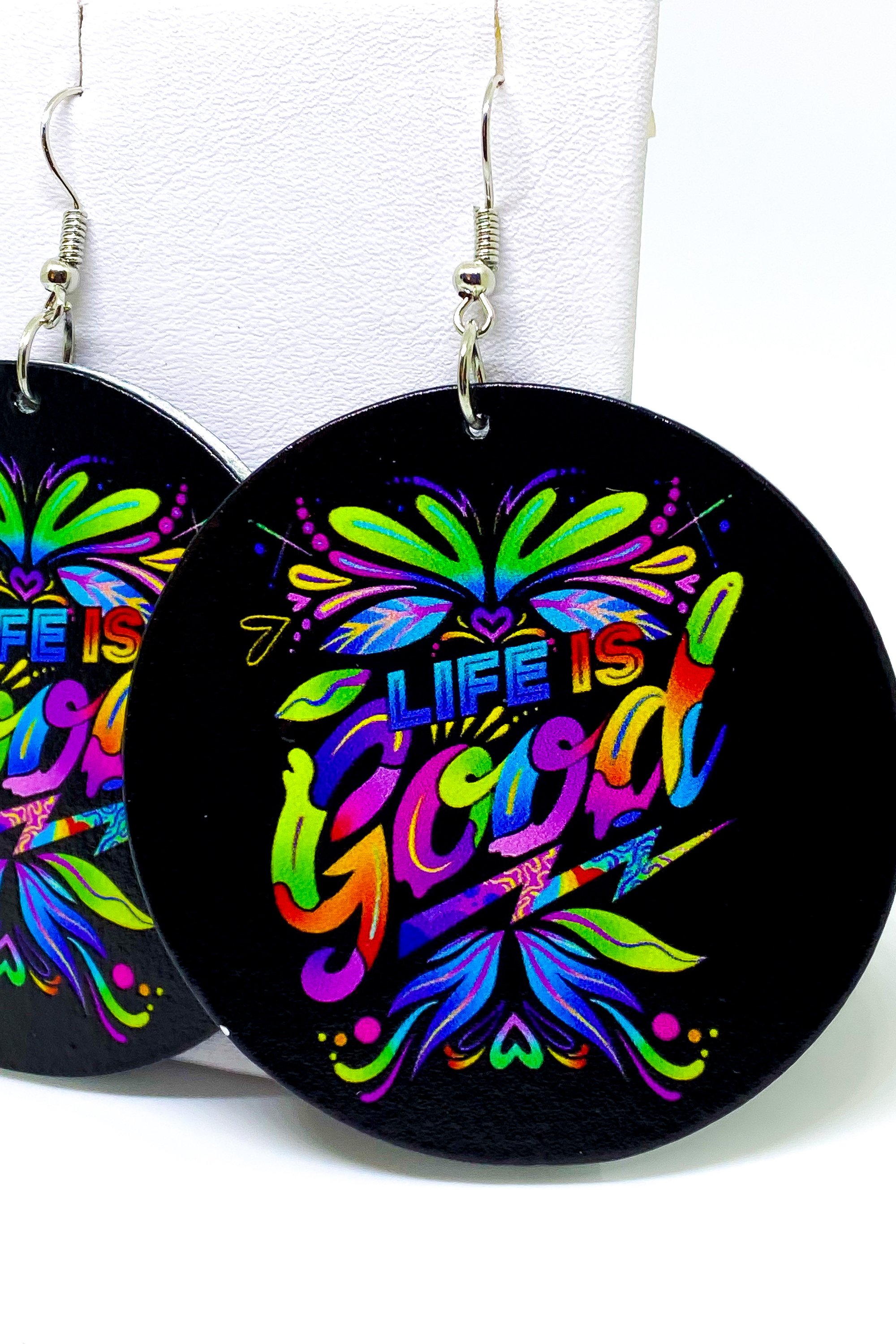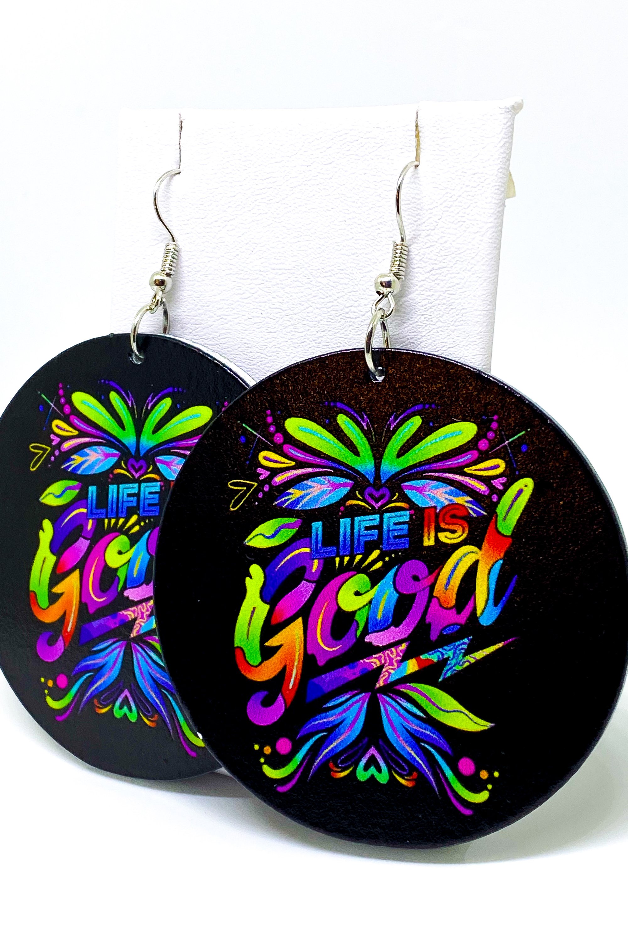 Introducing the Hoops - Life is Good earrings, a perfect blend of style and comfort. These stunning hoop drop earrings are designed to elevate your fashion game while ensuring you feel good wearing them. Made from high-quality wood, these earrings are not only lightweight but also durable, making them a fantastic addition to your jewelry collection.