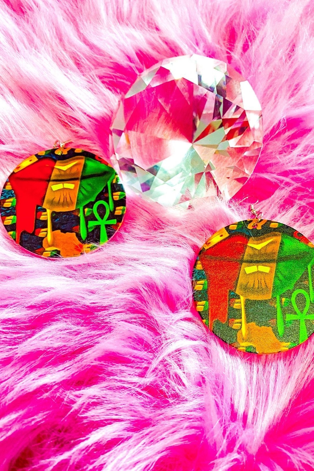 Introducing the Hoops - Lips on Drip Namaste earrings, a stunning pair of hoop drop earrings that blend cultural significance with modern fashion. These earrings are not just accessories; they are a statement of empowerment and heritage. Crafted from high-quality wood, they feature a unique print that repeats on both the front and back, ensuring that you look fabulous from every angle.