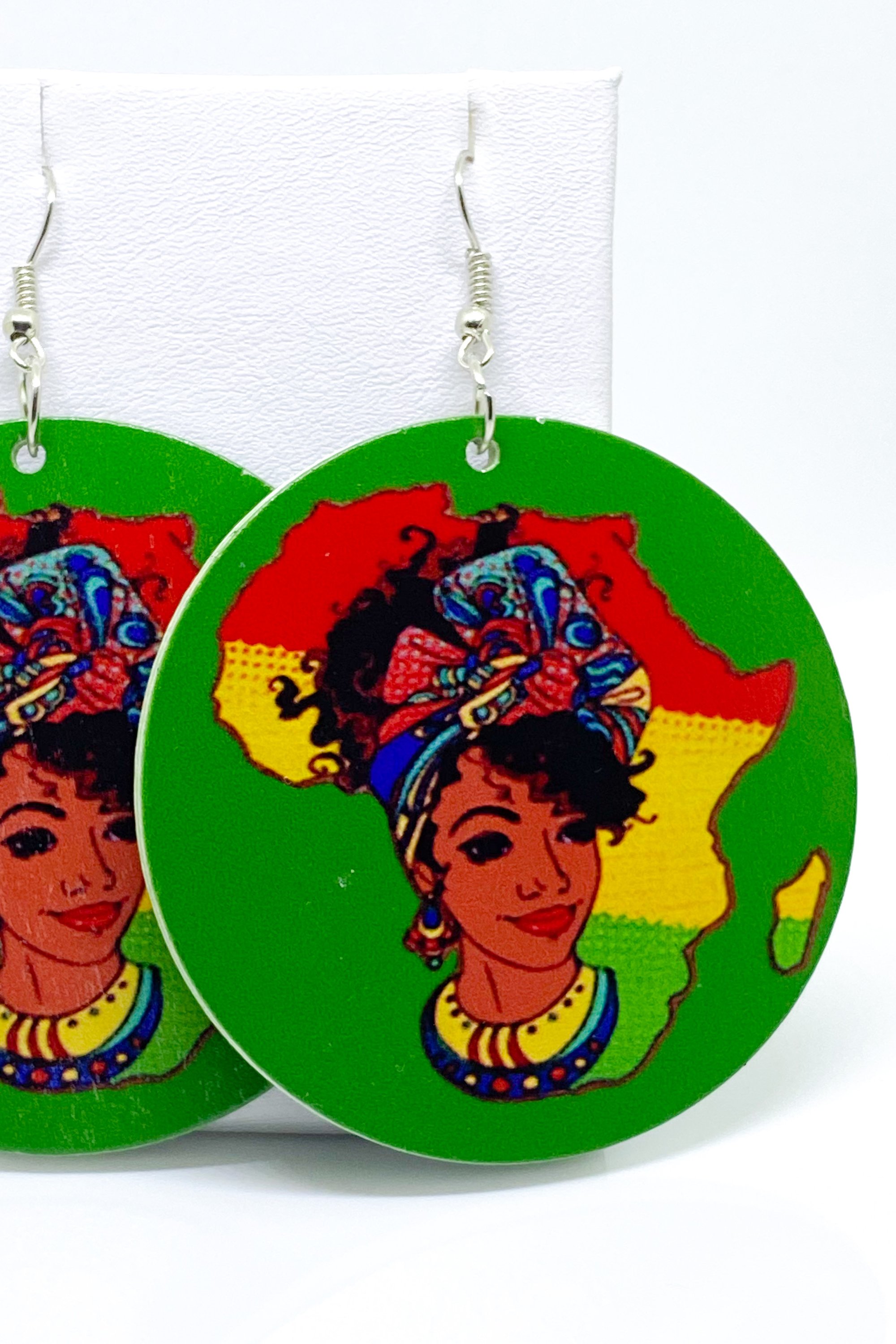 Introducing the stunning Hoops - Mother Africana, a pair of handcrafted hoop drop earrings that embody cultural vibrancy and artistic expression. Made from high-quality wood, these earrings are not only a fashion statement but also a celebration of heritage and style. With a diameter of 2.25 inches, they are designed to catch the eye and elevate any outfit, whether casual or formal.