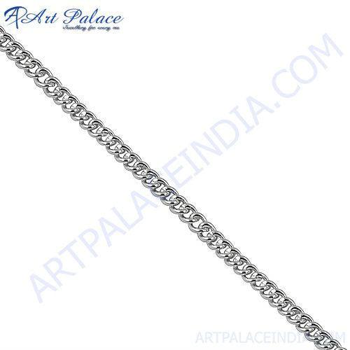 Elegant 925 Sterling Silver Plain Chain Jewelry showcasing polished links and intricate craftsmanship.