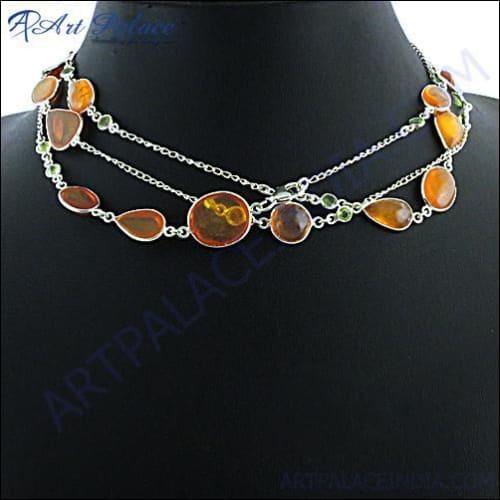 In conclusion, the Hot Sale Fashion Amber & Peridot Gemstone Silver Necklace is a must-have for anyone looking to add a touch of elegance and natural beauty to their jewelry collection. With its high-quality materials, versatile design, and handcrafted excellence, this necklace is sure to become a favorite accessory. Don't miss out on the opportunity to own this stunning piece—add it to your collection today and enjoy the compliments that will undoubtedly come your way.