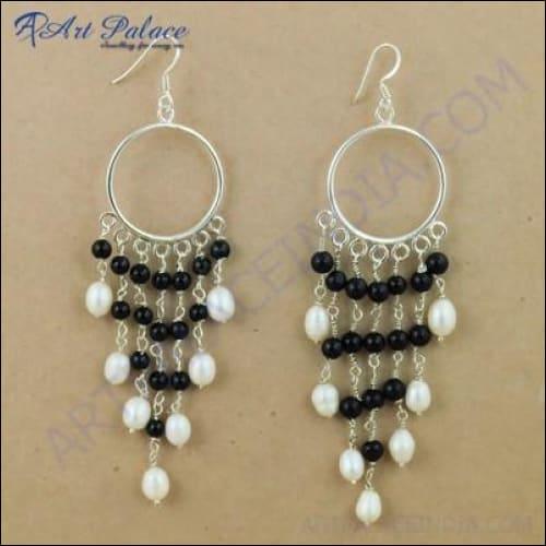 Introducing the exquisite Indian Black Onyx & Pearl Silver Heavy Beaded Earrings, a stunning piece of jewelry that embodies elegance and sophistication. These earrings are meticulously handcrafted, showcasing the beauty of black onyx and lustrous pearls, making them a perfect accessory for any occasion. Whether you're dressing up for a formal event or adding a touch of glamour to your everyday outfit, these earrings are sure to turn heads.
