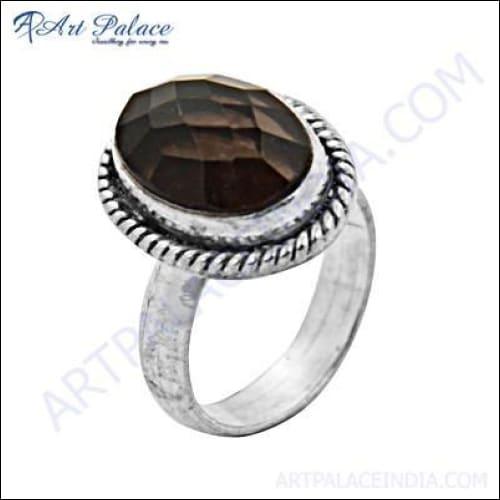 Dropship Indian Smokey Quartz Gemstone Ring in German Silver - Buy Now