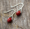 A pair of vibrant red Jasper Drop Earrings showcasing their elegant bohemian design and genuine Jasper stones.