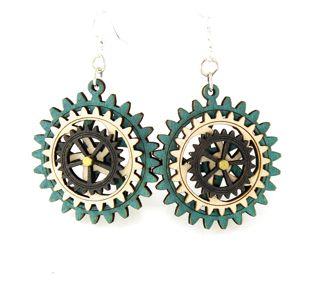 The Kinetic Gear Earrings 5004K come in a beautiful combination of Aqua Marine, Natural Wood, and Black Satin. This versatile color palette allows you to easily pair these earrings with a variety of outfits, making them a must-have addition to your jewelry collection.