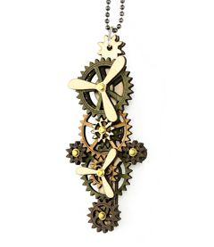 Measuring 3.7" x 1.5", the Kinetic Vertical Propeller Gear Necklace is laser-cut to perfection, ensuring precision and quality in every piece. The natural wood is beautifully stained with water-based dyes, resulting in a vibrant color palette that includes shades of apple green, tan, and brown. This necklace is not just a fashion statement; it’s a conversation starter.