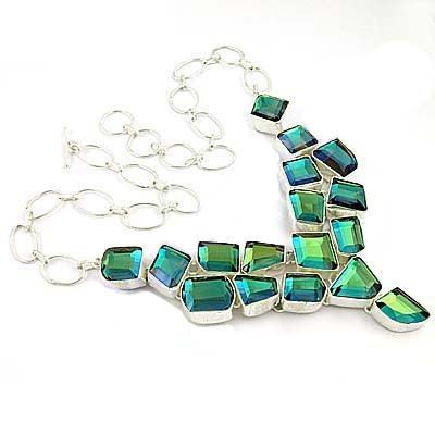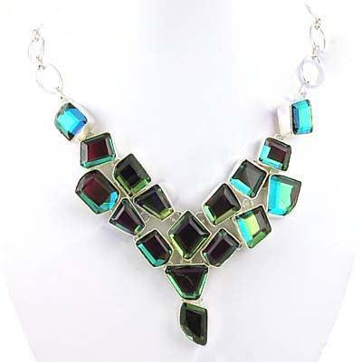 Dropship Labradorite Glass German Silver Necklace Party Wear Necklace Glamorous