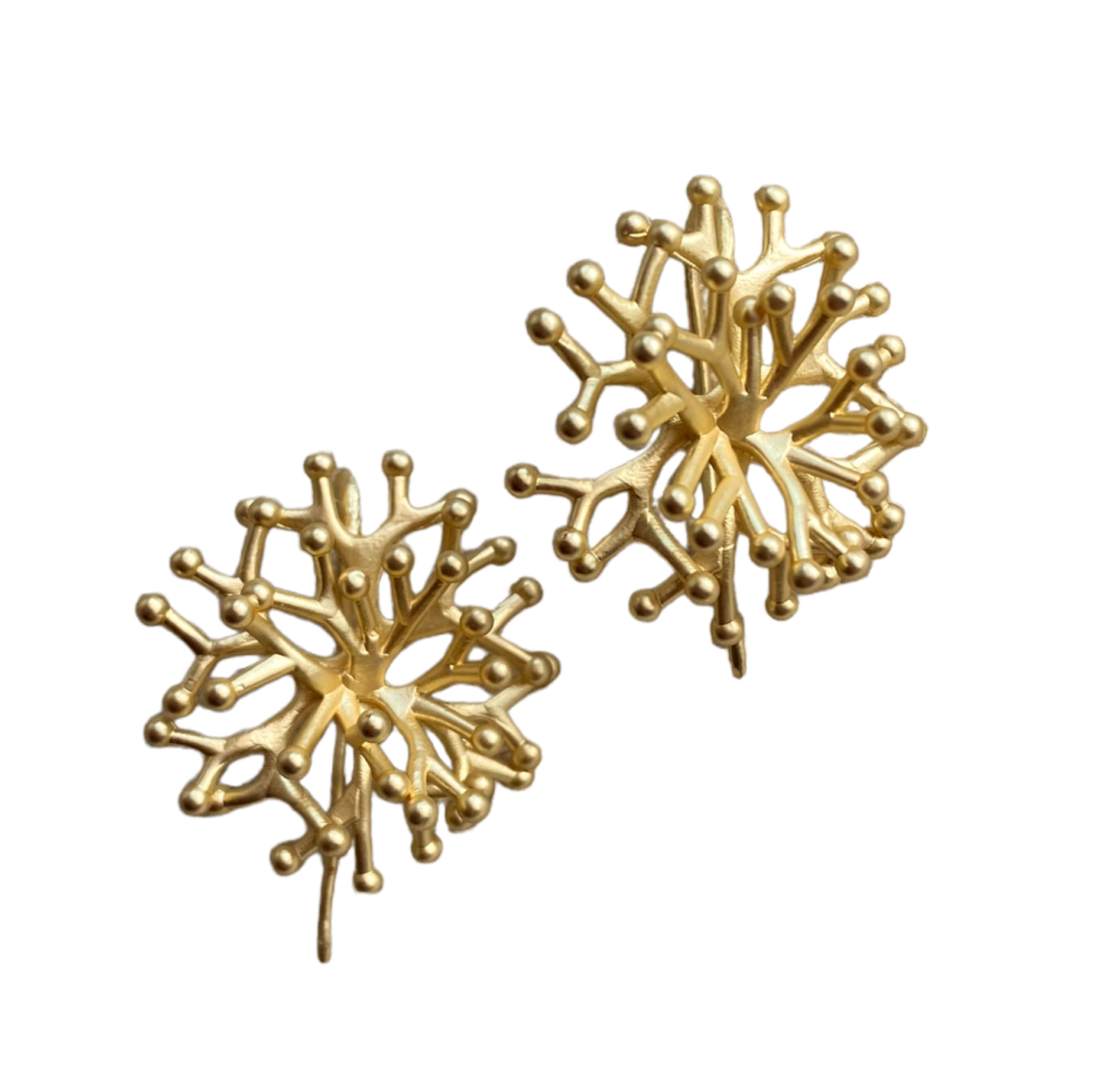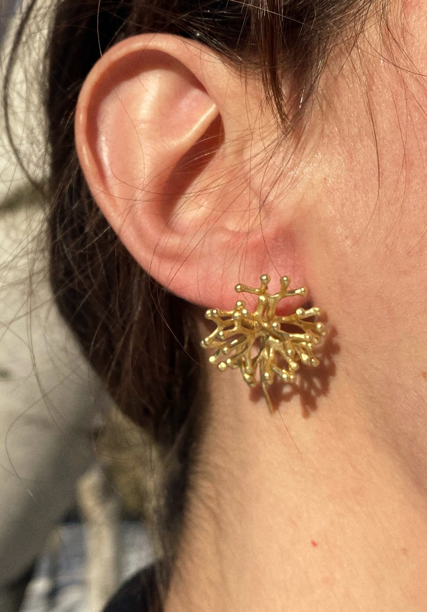 LAPILLI EARRINGS featuring a round coral-like design in gold tone metal, inspired by Sicilian sea beauty.