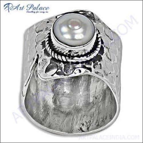 Dropship Latest Ethnic Design in Simple Silver Pearl Rings | 925 Sterling