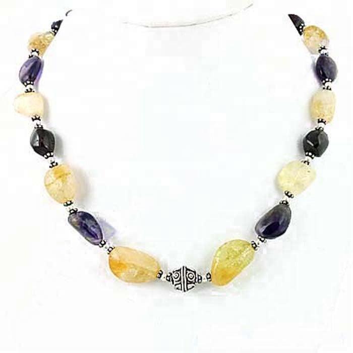 Elevate your style and make a statement with the Latest Fashionable Amethyst & Citrine Gemstone 925 Silver Necklace. Its vibrant colors, exceptional craftsmanship, and comfortable design make it a must-have addition to any jewelry collection.
