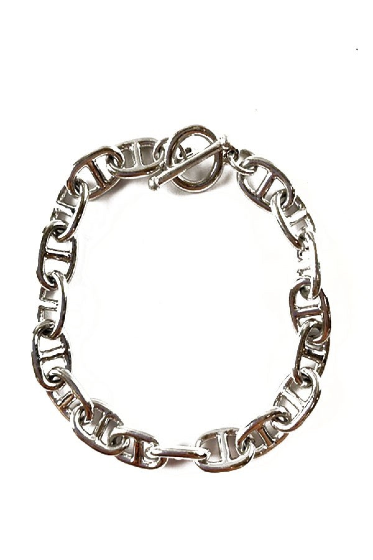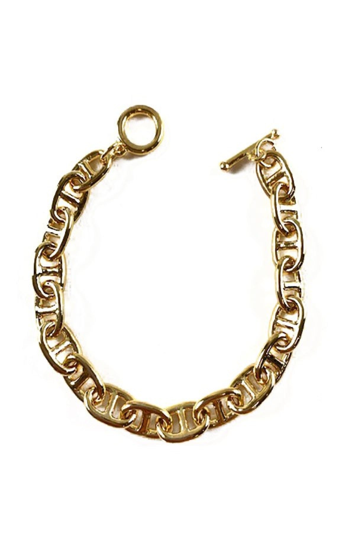 The LINK CHAIN BRACELET is characterized by its sleek and modern design. The double plating gives it a lustrous shine, making it a standout piece in your jewelry collection. The toggle clasp provides a secure fit, allowing you to wear it with confidence throughout the day. With a length of 7.5 inches and a thickness of 0.3 inches, this bracelet is designed to fit comfortably on your wrist.
