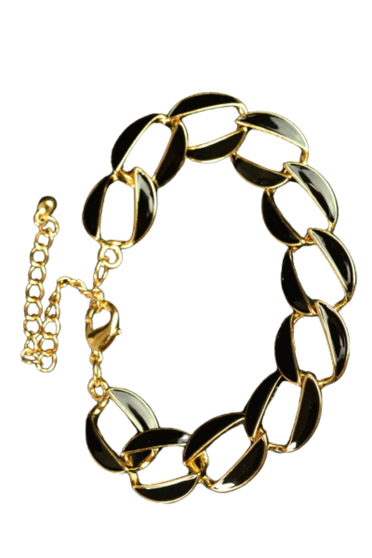 The Linked Bracelet showcases a unique linked pattern that is both modern and timeless. Each link is meticulously crafted to create a seamless flow, making it a versatile piece that can be worn for both casual and formal occasions. The gold tone hardware gives it a luxurious feel, making it an ideal gift for yourself or a loved one.