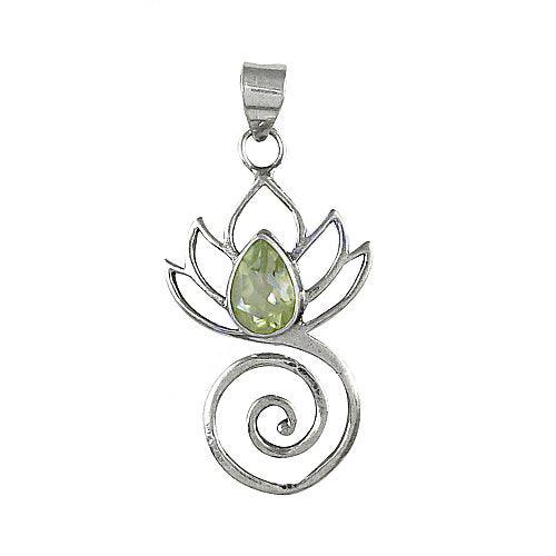 Lotus Style Logo Silver Pendant featuring a beautiful green amethyst gemstone, showcasing intricate design and craftsmanship.