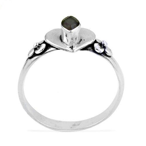 Lovely heart-shaped silver ring featuring a vibrant garnet stone, crafted from 925 sterling silver, showcasing exquisite craftsmanship.
