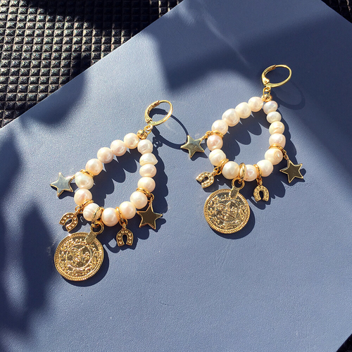 Smooth, creamy freshwater pearls with a combination of glinting gold lucky charms. Perfect for day or night, casual or dressy. They look effortlessly fabulous with a simple t-shirt!