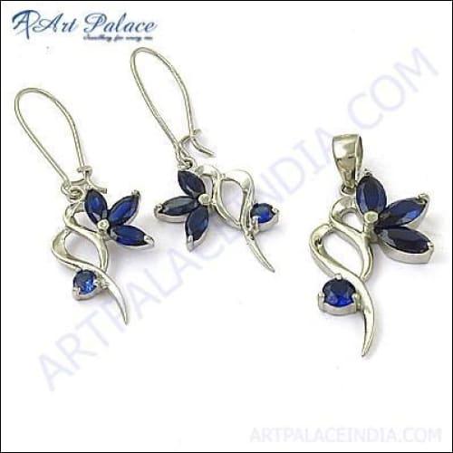 This pendant set is designed to complement a variety of outfits, whether you're dressing up for a formal event or keeping it casual for a gathering with friends. Its timeless design ensures that it will never go out of style, making it a valuable addition to your jewelry collection. The combination of the blue glass gemstone and silver creates a classic aesthetic that can be worn for years to come.
