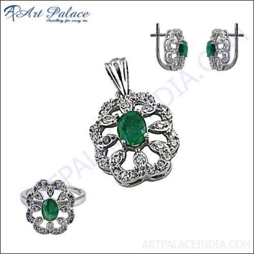 Introducing the breathtaking Luxury CZ Dyed Emerald Silver Jewelry Set, a stunning combination of elegance and affordability. This exquisite jewelry set is designed to elevate your style and make a statement at any event. Crafted with meticulous attention to detail by Art Palace, a renowned company with a legacy of premium jewelry manufacturing since 1981, this set is a true masterpiece.