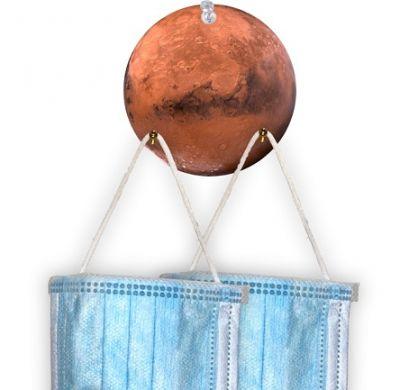 Mars Ornamental Mask Holder #T209 made from eco-friendly birch wood or recycled paper, featuring a decorative design for mask organization.
