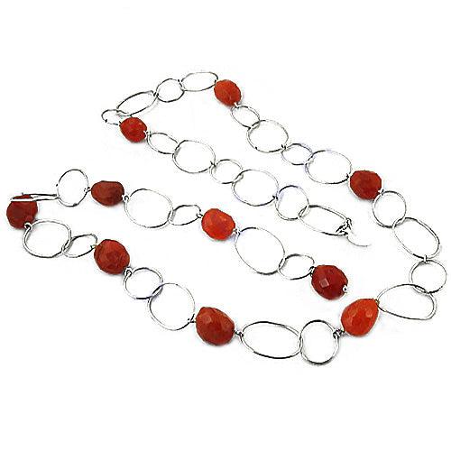 Natural Red Onyx Gemstone Sterling Silver Necklace featuring a vibrant red onyx stone and elegant beaded design.