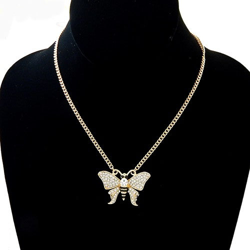 Introducing our exquisite Rhinestone Buttery Pendant Necklace, a perfect accessory to elevate your style and add a touch of elegance to any outfit. This necklace features a beautifully designed pendant that measures 1.5 inches by 1 inch in diameter, adorned with sparkling rhinestones that catch the light beautifully. Whether you're dressing up for a special occasion or adding flair to your everyday look, this necklace is sure to turn heads.