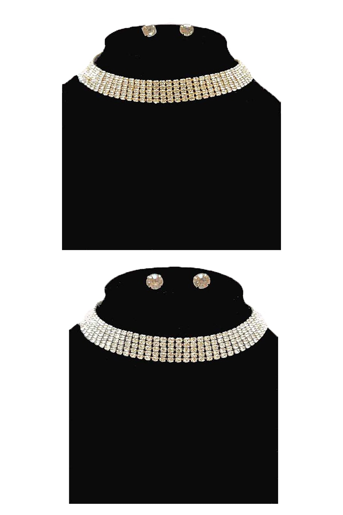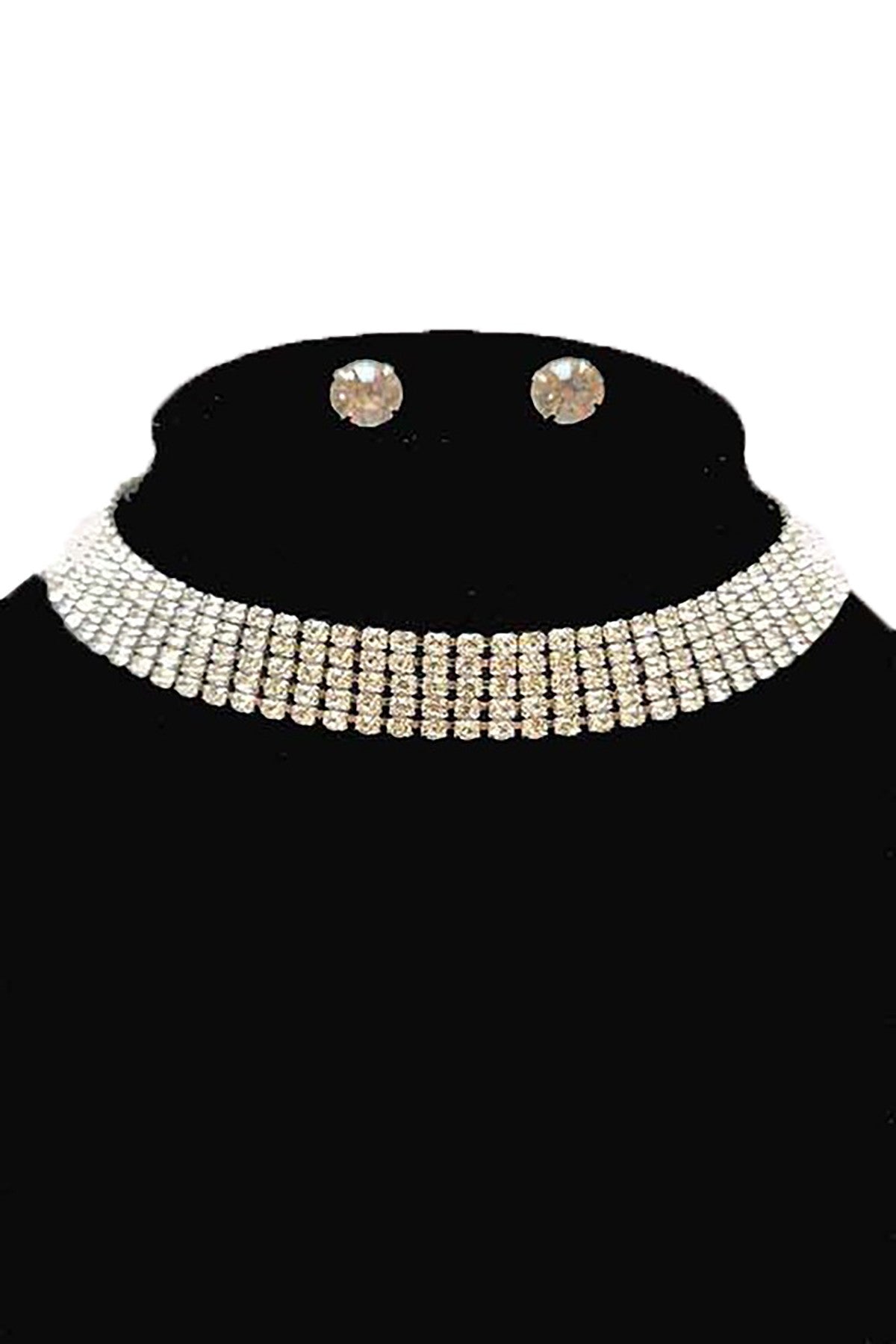 Elegant crystal choker necklace set with adjustable length and lobster claw clasp, perfect for any occasion.