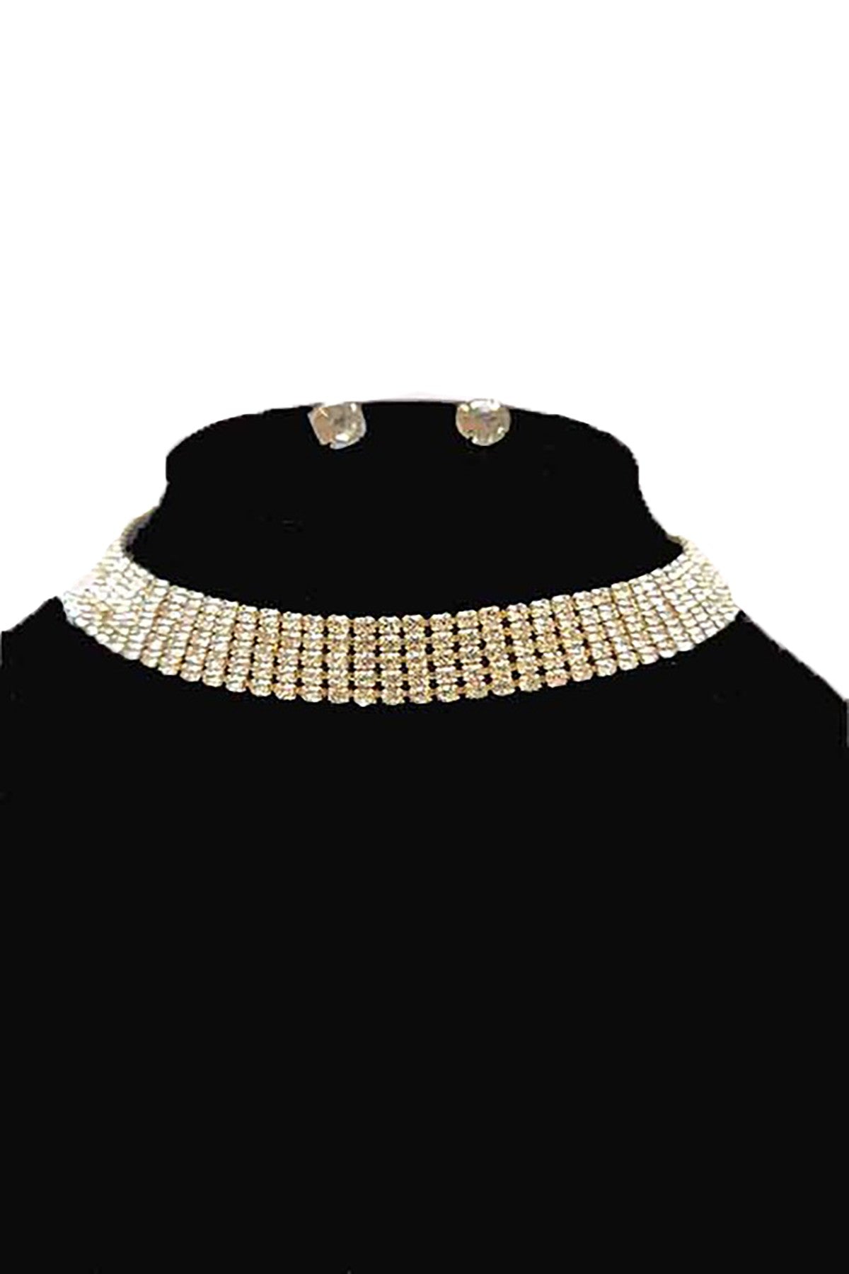 The Necklace Set Choker showcases a unique 5-line crystal arrangement that sparkles and shines with every movement. The intricate design is not only eye-catching but also versatile, making it suitable for both casual and formal wear. Pair it with a simple top for a chic look or wear it with a glamorous dress for a night out.