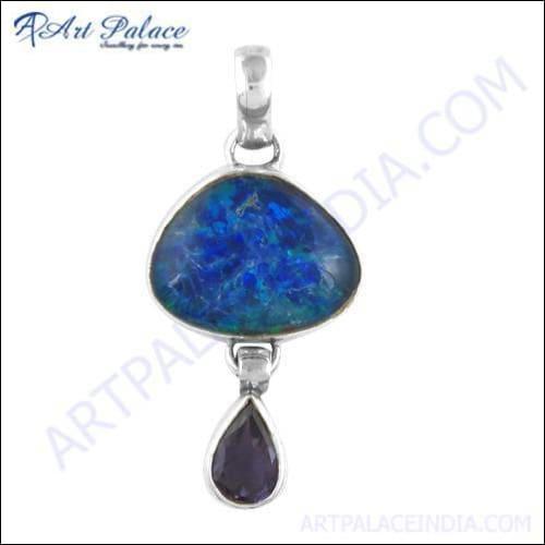 Introducing the exquisite Ethiopian Opal & Iolite Gemstone Silver Pendant, a stunning piece of jewelry that embodies elegance and sophistication. Crafted from high-quality 925 sterling silver, this pendant showcases the mesmerizing beauty of Ethiopian opal and iolite gemstones, making it a perfect accessory for any occasion. Whether you're dressing up for a special event or looking to add a touch of glamour to your everyday outfit, this pendant is sure to turn heads.
