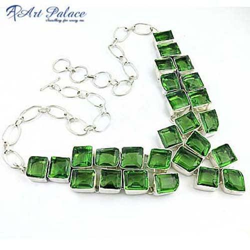 Dropship New Extra Shine Peridot Gemstone German Silver Necklace Wonderful