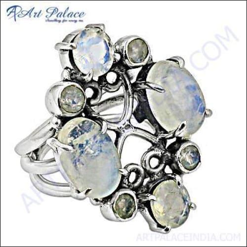 The design of the Newest Style Rainbow Moonstone Gemstone Silver Ring is both modern and timeless. Its sleek silhouette and the way the moonstone is set make it a standout piece. This ring can be worn alone for a minimalist look or stacked with other rings for a more eclectic style. Its versatility makes it suitable for various occasions, from casual outings to formal events.