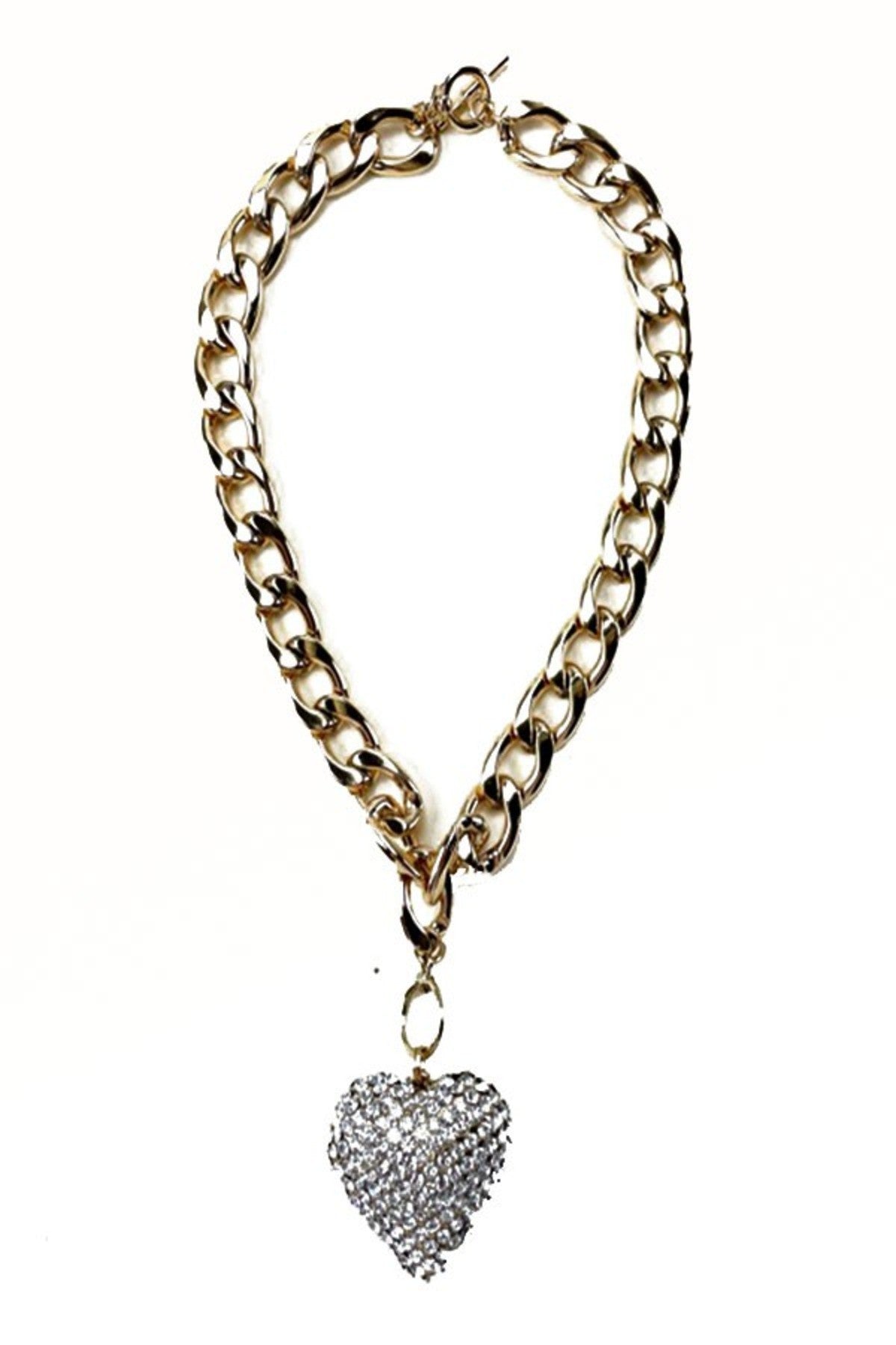 Introducing the Oversized Rhinestone Heart Pendant Necklace, a dazzling piece that adds a touch of glamour to any outfit. This exquisite necklace features a large heart-shaped pendant adorned with sparkling rhinestones, making it a perfect statement accessory for both casual and formal occasions. With an approximate length of 18 inches, it sits beautifully on the neckline, enhancing your overall look.